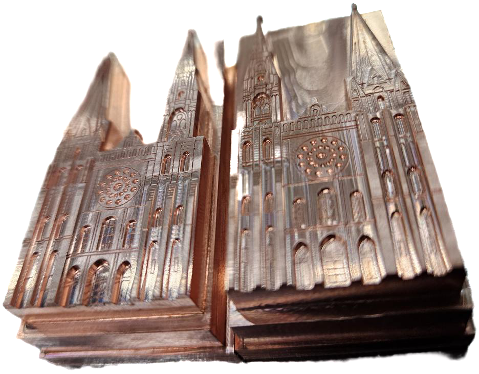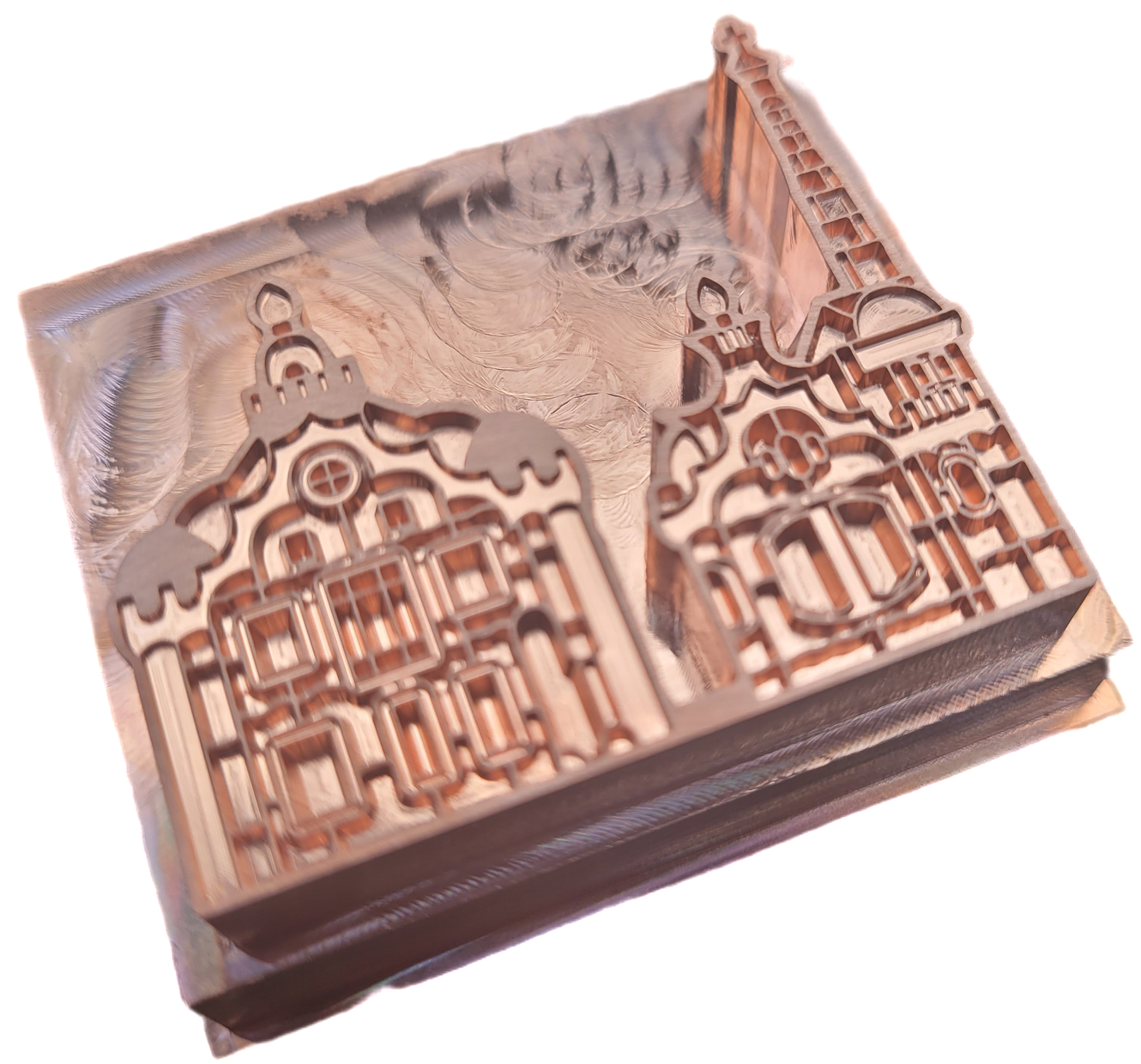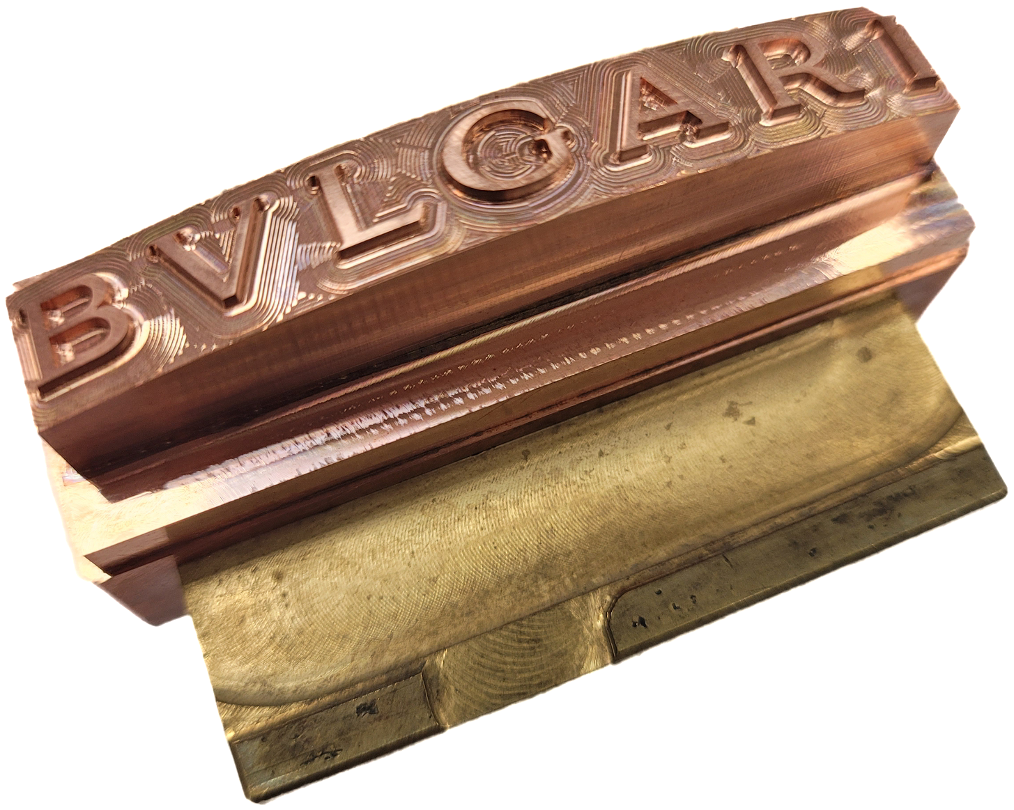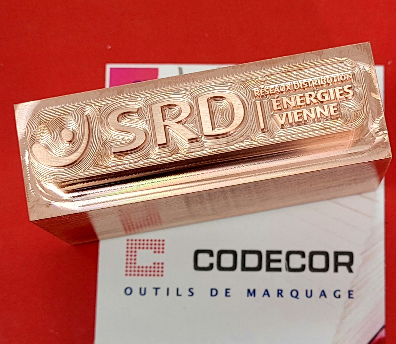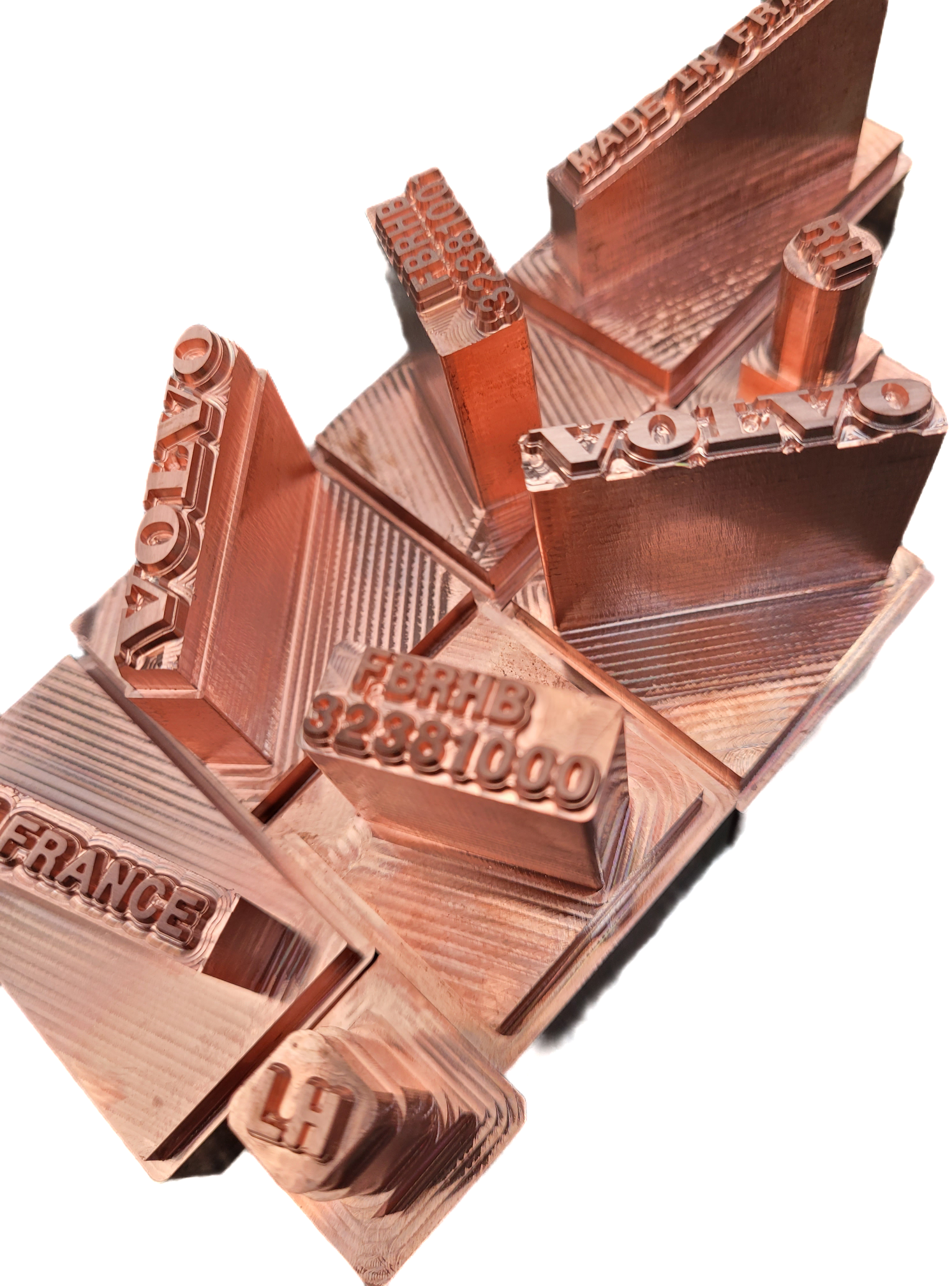 Pour les électrodes, en particulier pour la gravure de logos, textes ou motifs d'aspect, nous préférons travailler le cuivre, qui produit de meilleurs résultats, mais nous pouvons également graver des électrodes en graphite sur demande.