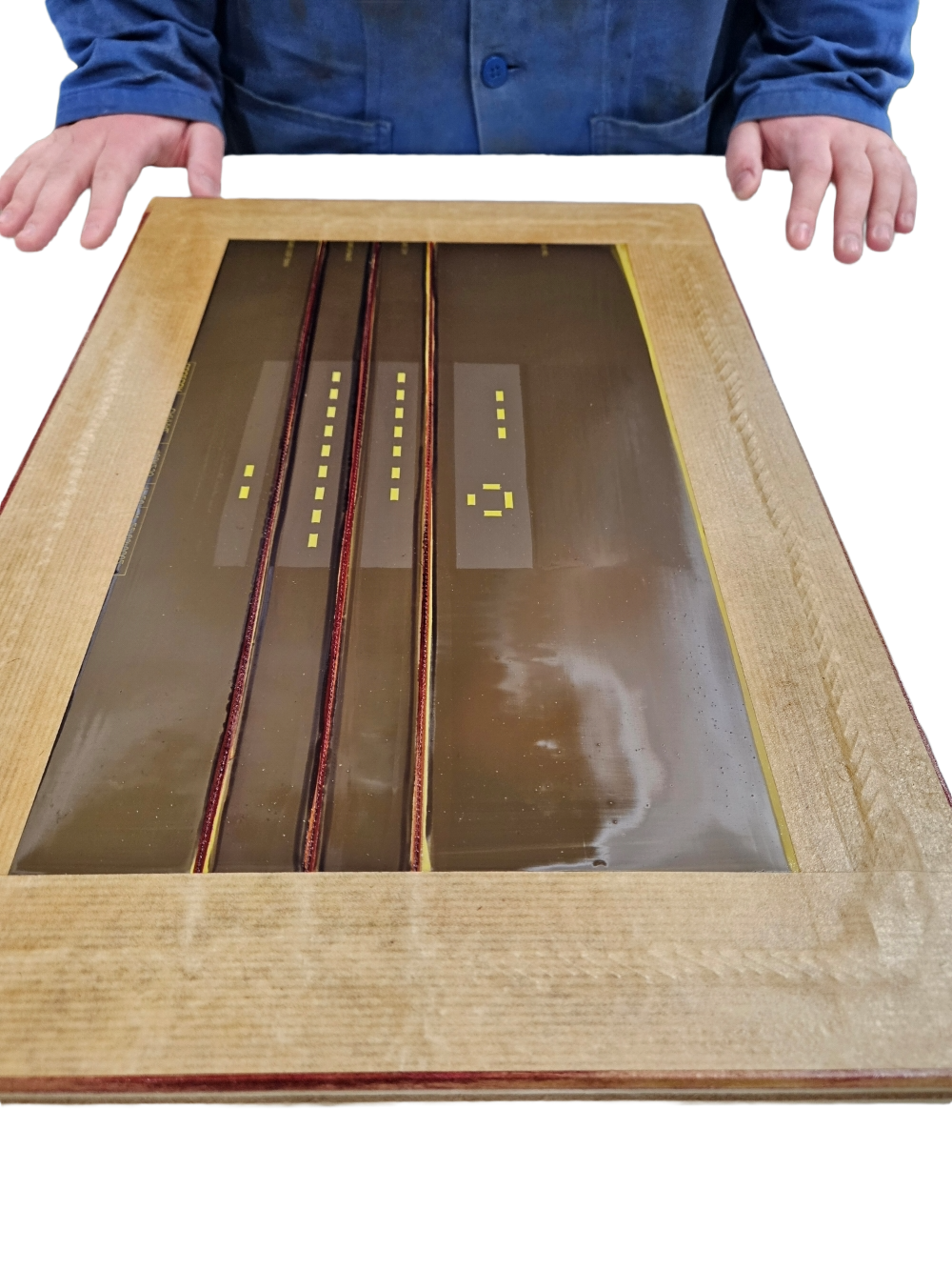 Toute notre fabrication correspond aux exigences de contrôle qualité de la norme ISO 9001 V 2008. Nous avons choisi pour nos écrans d'utiliser des cadres MDF, peu sensibles à l'humidité, d'une grande rigidité, garante d'une mise au point rapide et facile. Nous pouvons également faire la tension et la gravure de nos toiles sur des cadres alu ou acier et adapter toutes dimensions sur demande. La fourniture de cadres simplement tendus, ou tendus et enduits, mais non gravés.